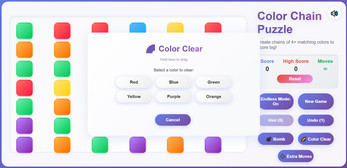 Color Chain Puzzle is a vibrant, modern match and swap puzzle game designed for endless fun on any device!